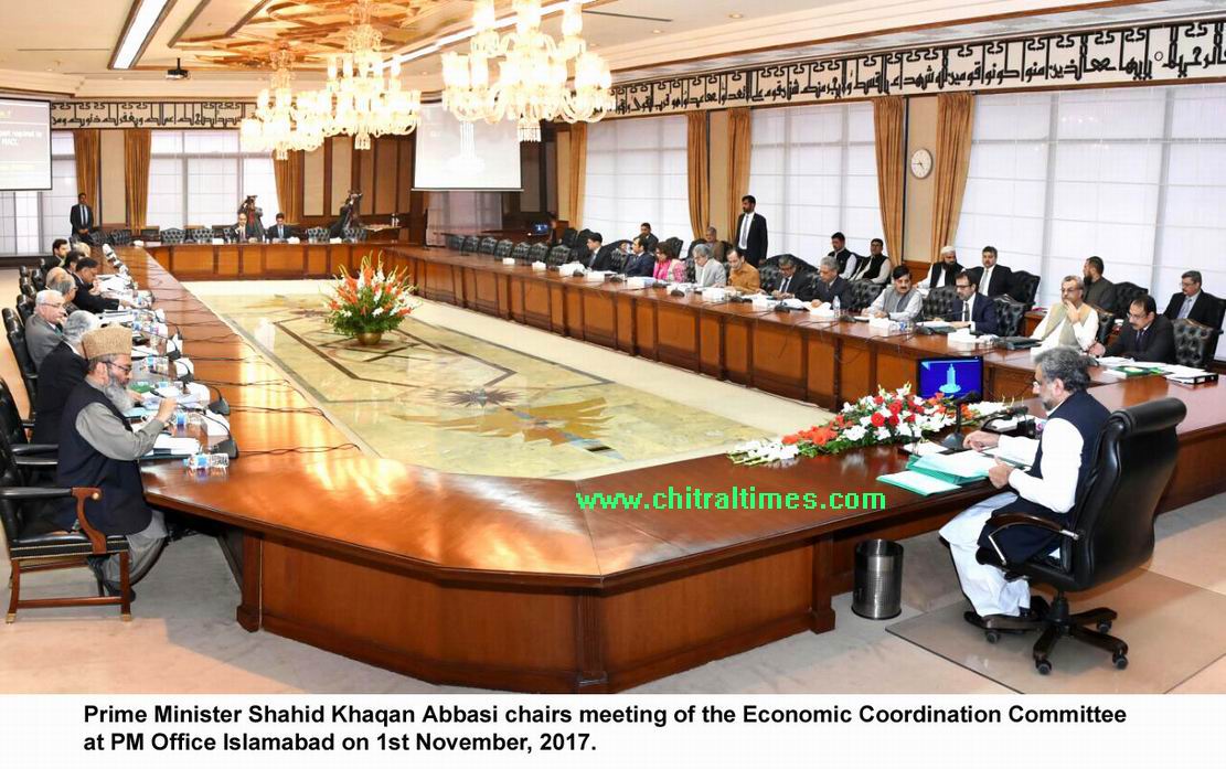 Prime Minister Shahid Khaqan Abbasi chairs meeting of the Economic Coordination Committee at PM Office Islamabad on 1st November, 2017.