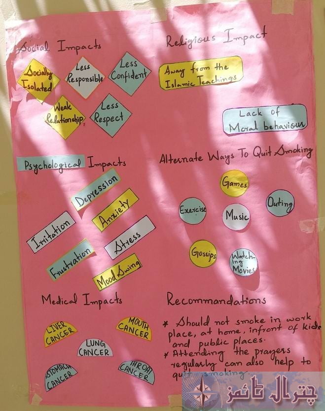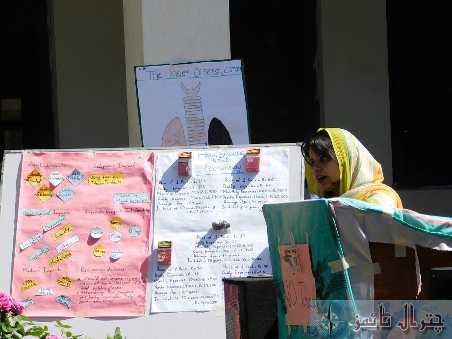 KURAGH: A grand program of “Global No Tobacco Day” was organized at GHS Charun with collaborative efforts of Aga Khan Higher Secondary School Kuragh and Government High School Charun. The program was attended by people from various walks of life, including teachers and students of both the schools, and local dignitaries. Students of GHS Charun compered the program.
